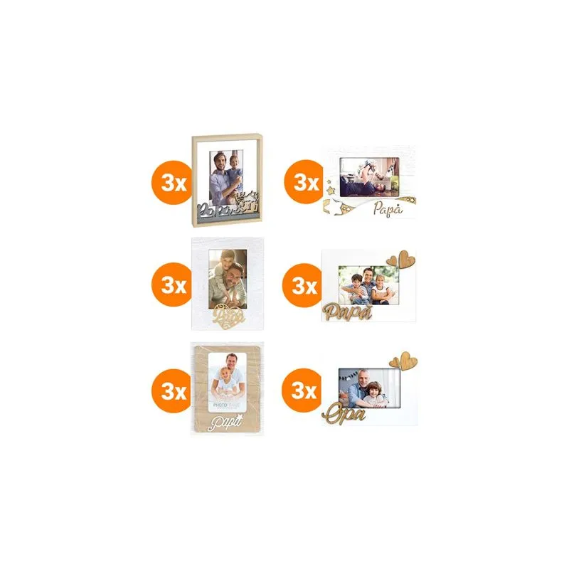 In this package, you will find no less than 18 ZEP photo frames, all in the theme of dad. You will receive 6 different variations, with 3 of each frame included. This is perfect for stocking your store or webshop, and it comes with an extra discount that you can see after logging in.