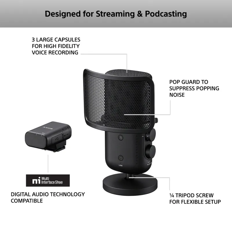 With a high fidelity voice sound signature, the ECM-S1 is the best companion for your streaming and podcasting content, ensuring no delay in your voice capture. Shipped with a pop guard and a stand, it can also be attached with a screw mount to an arm for your studio setup. Wire it to your PC directly via USB or via the receiver on your camera and start telling the stories of tomorrow.