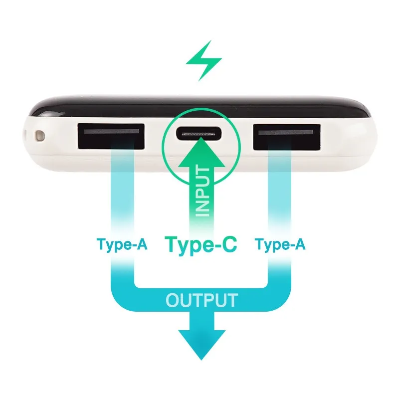 The powerful battery pack of Silicon Power GP28 is compatible with all devices that can be charged via USB. The 10000 mAh capacity ensures 2-4 full charge cycles in almost every smartphone. The GP28 is equipped with two USB output ports that allow you to charge two devices at the same time, and one microUSB and USB-C port for charging the battery bank itself. Silicon Power battery banks are distinguished by a C-type input. Choosing two inputs means more convenience. In addition, it is sustainable, as the use of C-type ports on devices is on the rise. SmartFOCUS advanced calibration technology stabilizes voltage currents throughout the charging process to maintain maximum charging power. SmartSENSE intuitive and universally compatible charging technology maximizes charging speed and automatic pairing with almost any device. SmartSHIELD provides comprehensive 12-point security protection. At the touch of a button, the indicator provides information on remaining battery power and wakes up Apple iPhones and iPads.