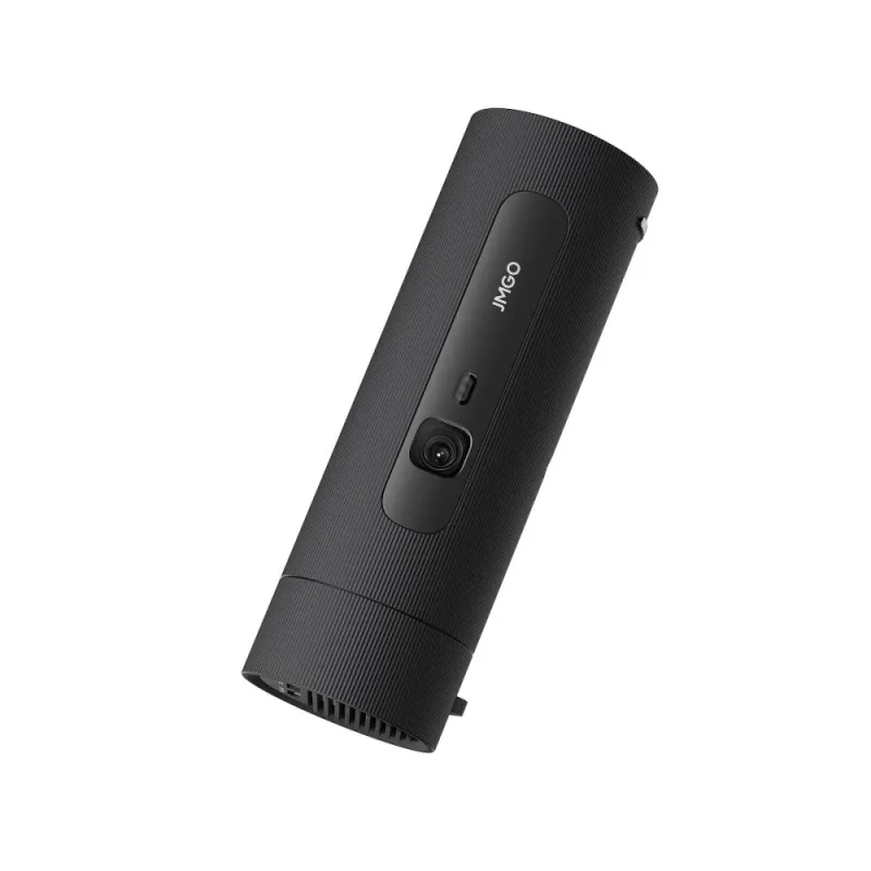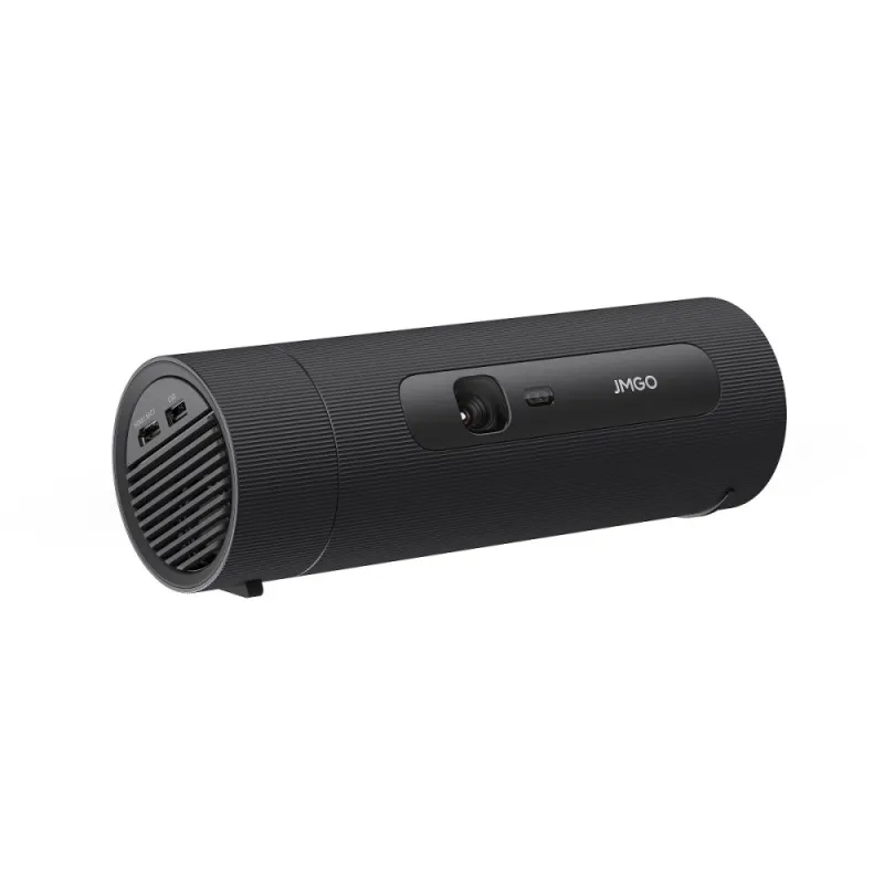 The JMGO PicoFlix is a truly portable and powerful LED projector, featuring an integrated rotating gimbal design made of aluminum, as well as a FlexiSmart Adaptive System. It has a playtime of up to 4.5 hours and can operate wirelessly and unplugged. The projector includes Google TV with Built-In Netflix, Google Cast Support, and Google Assistant Support, allowing easy access to over 10,000 apps.