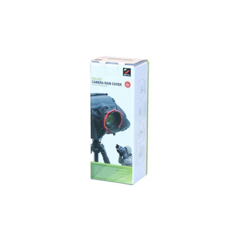 The Matin M-7100 Deluxe Camera Rain Cover is equipped with a transparent window allowing the viewfinder and LCD screen to be visible when the camera is fitted with the waterproof cover. On the left and right side of the cover are two holes, which act as sleeves for your arms. These sleeves are elasticised at the end and ensure a tight fit around your arms, preventing water and dust etc. from reaching the camera.