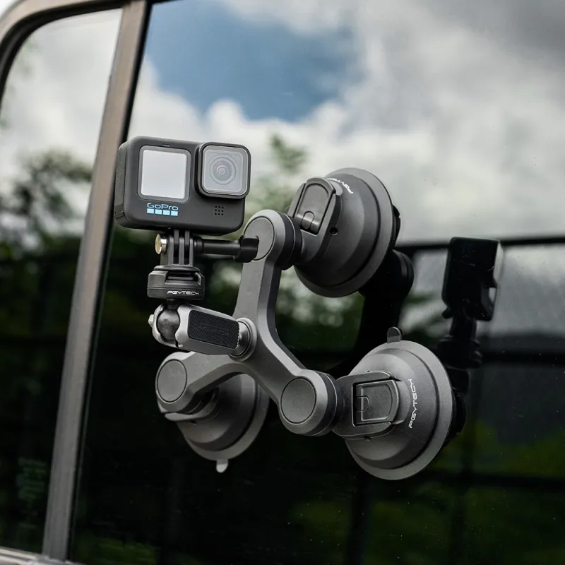 Ultimate shooting capabilities with a powerful grip The PGYTECH CapLock Three arm Suction Mount is designed to securely attach action cameras, smartphones and other devices to car windows, car bodies, walls and tabletops for long lasting moving or static shots.