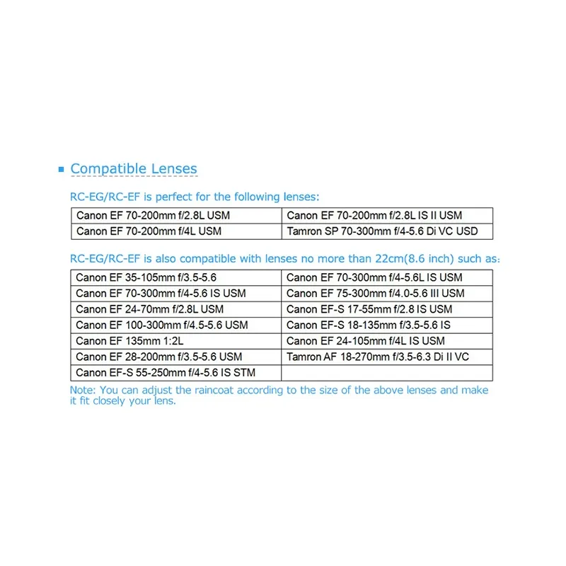 The JJC RC-DK Rainincover is a raincover suitable for under the Nikon D7100, D5500, D3300, D610 and D750 DSLRs. The cover is developed in such a way that it covers your camera completely and protects against rainfall. The RC-DK Rainincover is also suitable for the use of almost every type of lens with a maximum length of 22 centimeters, because the cover is secured by Velcro to the objective.