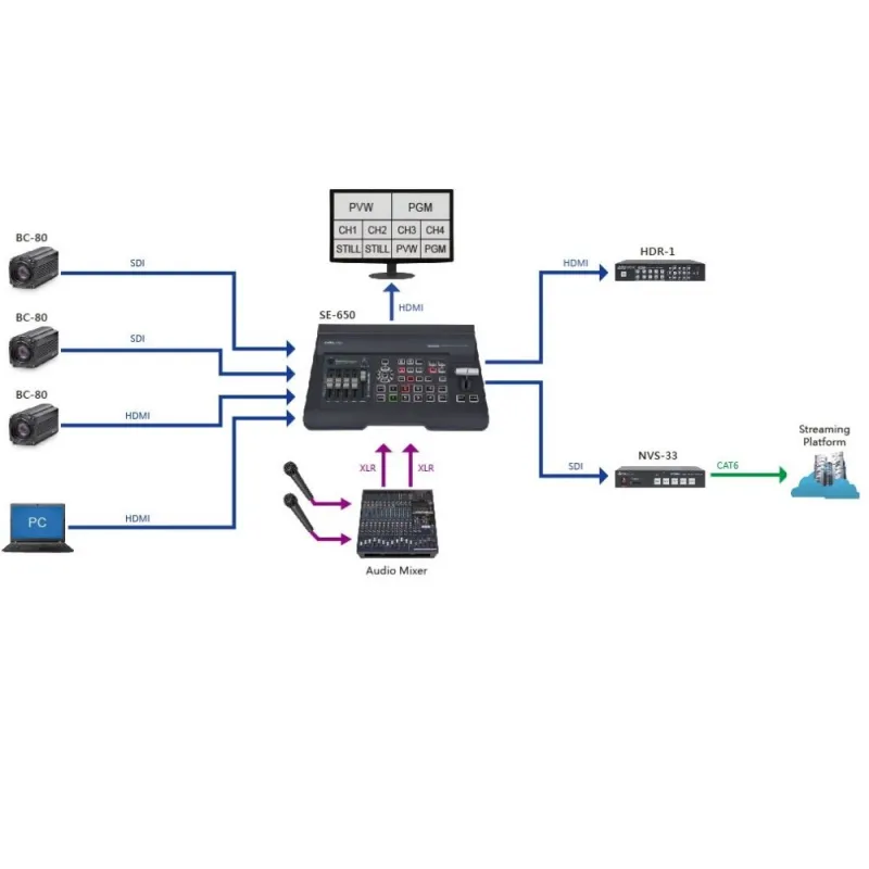 Using H.264 and AAC compression, the HDR-1 records video files in 1080p which are instantly ready to upload to your website or social media outlets, such as Facebook, Youtube, and more. Simply record your show, then connect your USB drive to a computer, and start uploading.