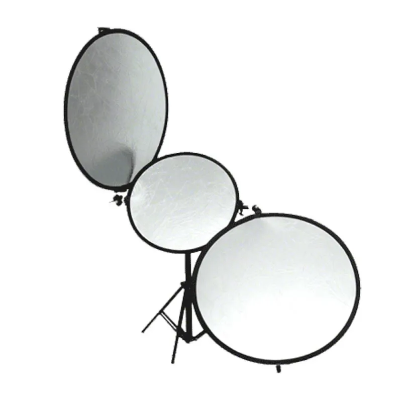 The Foldable Reflectors can be attached on the convenient holder consisting of extension arm and brackets sturdily and without complications. All Reflectors have a silver front side and a gold back side. They brighten up chin and cheek parts of your motif. The Tripod, which is included in this set, can be extended up to a height of approx. 238cm.