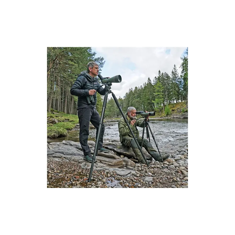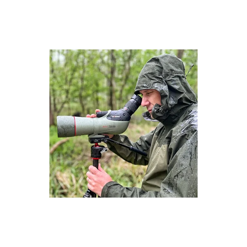 When looking through the spotting scope for long periods, it is wise to use a tripod. A tripod allows you to fully focus on the subject. The Kowa TSN66A spotting scope is equipped with both 1/4" and 3/8" threaded connections. However, it is important to buy a tripod that has the right height and perhaps choose one with a fluid-damped head. A tripod with a fluid-cushioned head moves more fluidly and prevents the spotting scope from overshooting once you have the subject in focus.