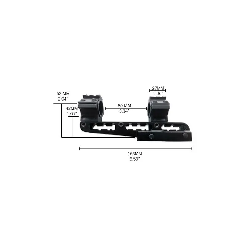With the Konus Cantilever Mount Universal you mount your rifle scope on your rifle in an easy way. This allows the rifle scope to be mounted further forward, creating space to use a magnifier. This also provides better relief for the eye and creates a larger field of view to work with. The Konus Cantilever Mount Universal is suitable for 25.4 mm and 30 mm tube and offers more adjustment possibilities than other Cantilever Mount. This allows you to mount the rifle scope to your own preference, reducing the chance of missing the target even further.