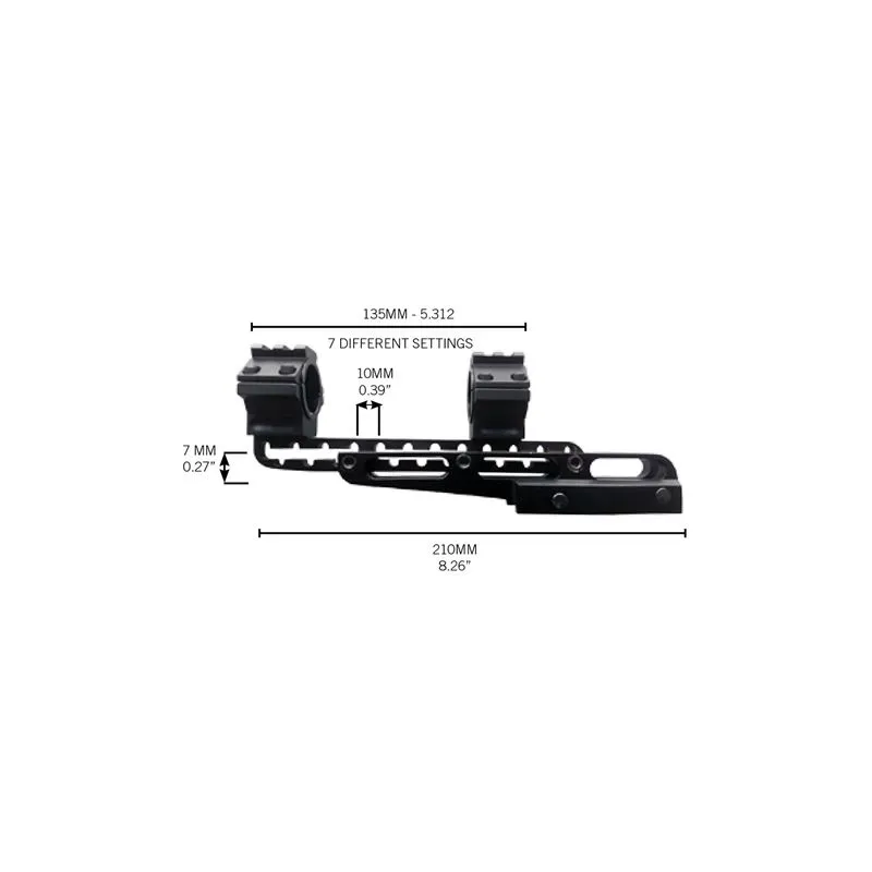 When you want to position the rifle scope forwards, the three screws can be removed with the supplied Allen key. After this, the Konus Cantilever Mount Universal can be set to 7 different positions, after which you fix the two screws again. Should the front of the unit become too heavy and the unit does not feel comfortably in your hand, then the assembly can be slid backwards as desired. After this you tighten all screws and the Konus Cantilever Mount Universal is ready for use.