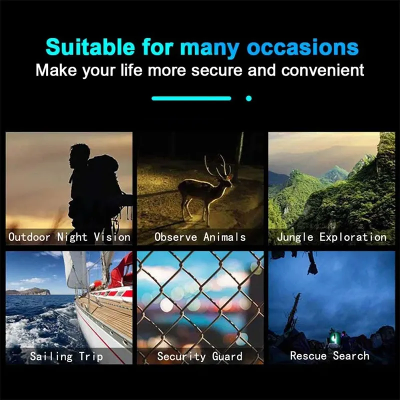 Clear Visible in 100% Darkness. The newly upgraded night vision device has built-in 850nm infrared illuminator and CMOS sensor, allowing you to see animals or plants clearly in 100% darkness. It allows you to have the perfect field of view without being limited by ambient light. You can use it to take high-definition photos and videos with excellent optical clarity during the day, low light or night; it has 3 modes: take photo, record video (no sound) and play.