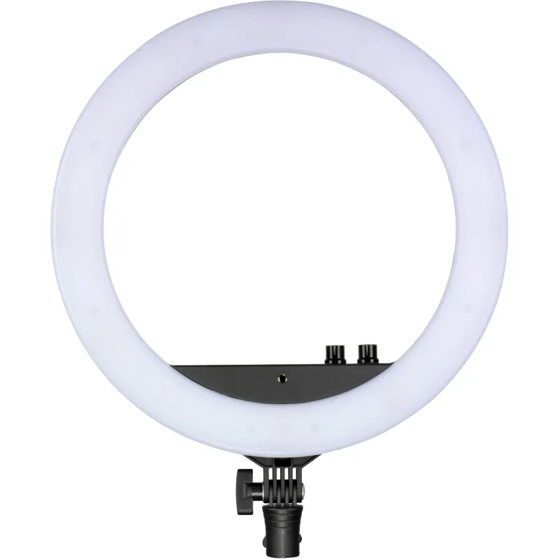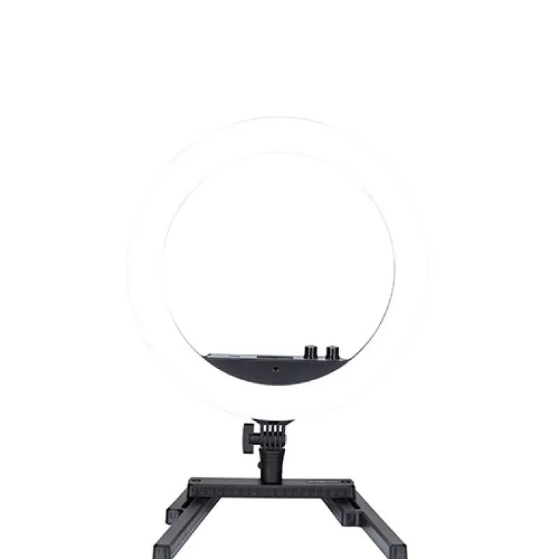 With Halo ring lights, you can quickly achieve beautiful, studio-quality results without adding plastic filters or cloth diffusion. Centrally located control knobs accessible from both in front and behind the light enable you to dial in brightness from 0-100, saving you the trouble of moving it back and forth to achieve the required light intensity and temperature from warm to cold (2700-6500K) to match other fixtures, ambient light conditions, or to offer creative options.