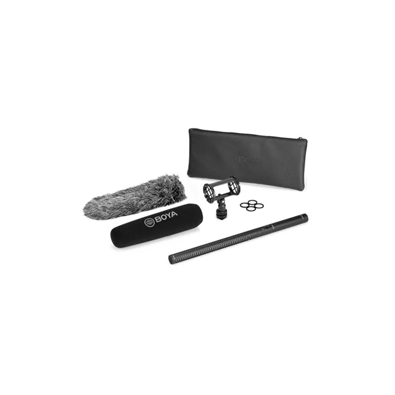 1x BY-PVM3000M microphone; 1x Anti-shock holder; 1x Windscreen; 1x Windscreen; 1x Storage pouch; 1x Spare set of rubber bands; 1x Warranty certificate; 1x User Manual; 1x Package
