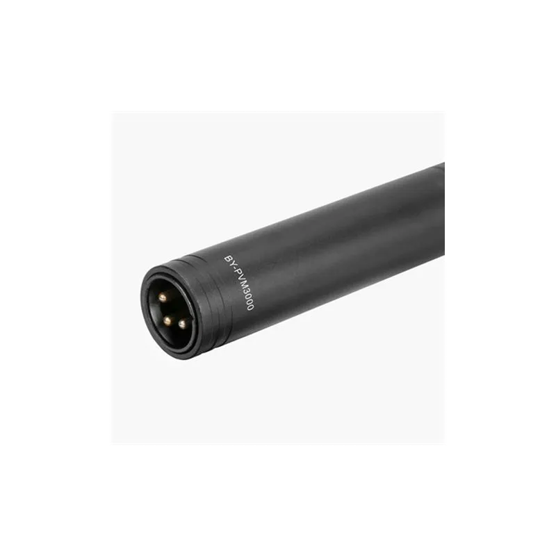 The BY-PVM3000M is ideal when you want to capture sound from a distance of several meters pure and where background noise has to be filtered out. The built-in xlr-male connection allows you to connect an xlr cable and connect the microphone to your camera. We also have a dedicated cable to connect to your iPhone (see optional accessories). The supplied pop cap and wind filter ensure that you do not suffer from (wind) noise indoors and outdoors. The BY-PVM3000M is mounted in a holder with elastic bands. This ensures that movements or taps on the camera do not affect the sound. If your camera does not provide phantom power, you can also power the BY-PVM3000M by inserting a aa-battery.