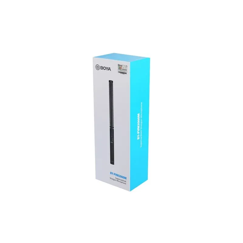 Boya's BY-PVM3000M is a professional high-end directional microphone with supercardioid directional characteristics. The built-in preamp module ensures that the sound is amplified. The BY-PVM3000 is available in two versions: S and M. You are currently viewing the M version, with a length of 38 cm. The M version records sound at an angle of 50 degrees. Compared to the S-version, the BY-PVM3000M records sound at a smaller angle. This results in a muffler volume and relatively less ambient noise. The BY-PVM3000M is suitable for long distances. The button on the BY-PVM3000M switches the microphone on and allows you to switch on a low-cut filter if you wish. This blocks unwanted humming, for example from air conditioning or traffic.