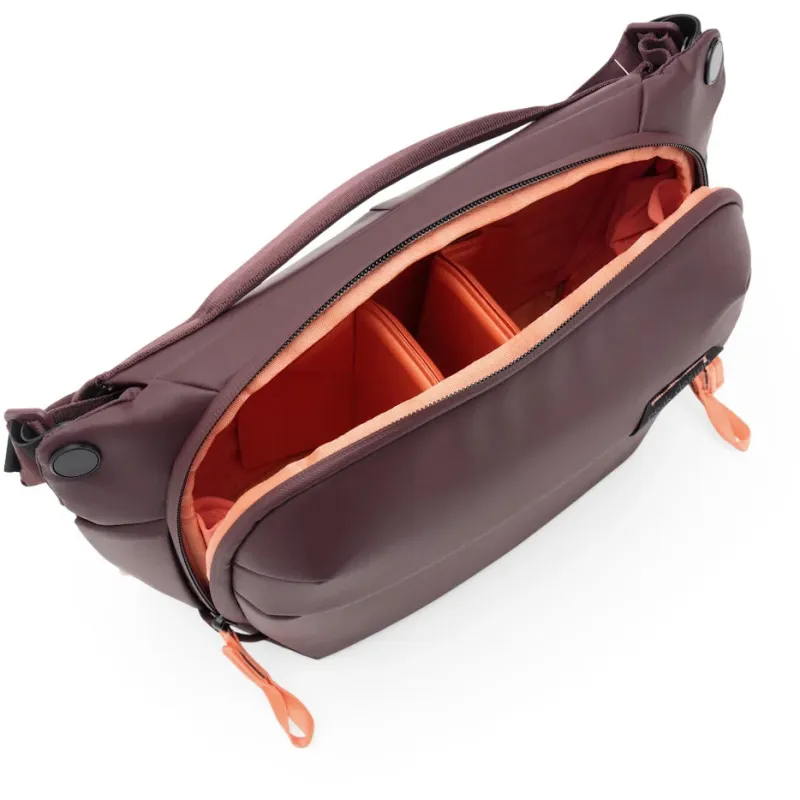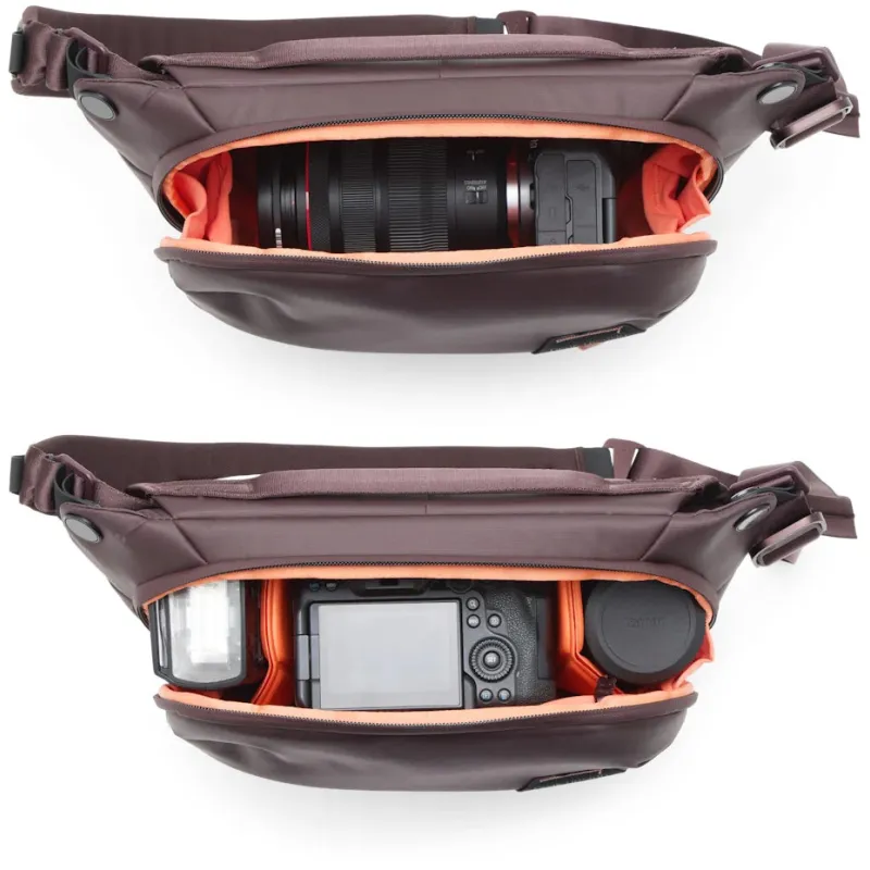 The Everyday Sling has customizable padded dividers for efficient organization of camera equipment and personal items, ensuring quick access to your belongings.