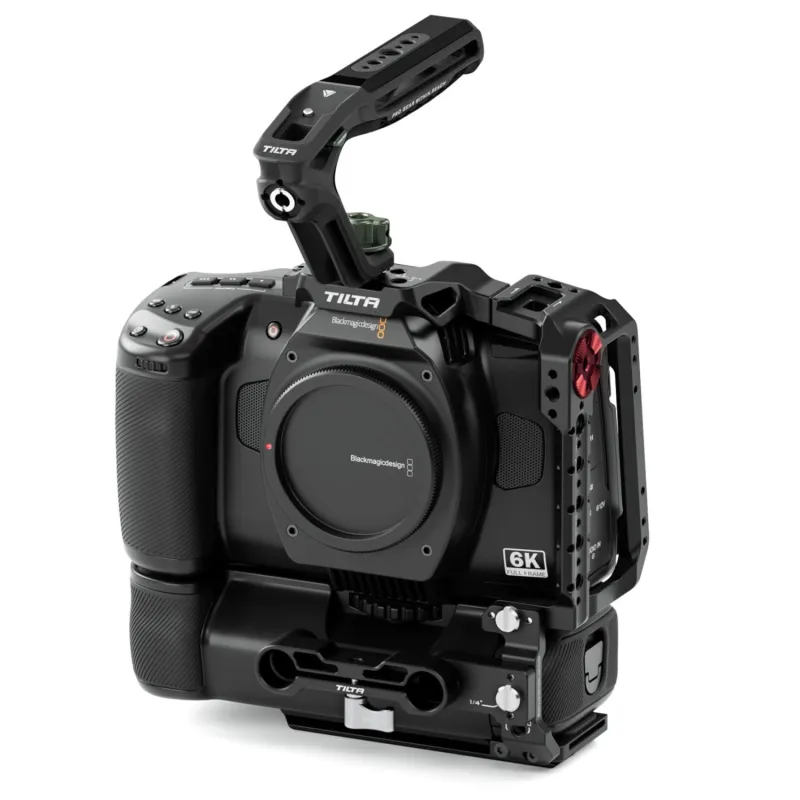 The foundation of this Camera Cage for the BMCC 6K (Full Frame) provides protective armor for the camera body and allows users to secure different accessories to improve the cameras functionality. This updated version features a top plate that perfectly aligns with the 1/4-20 thread on the top of the Full Frame camera body which is not currently compatible with our previous version of this cage.