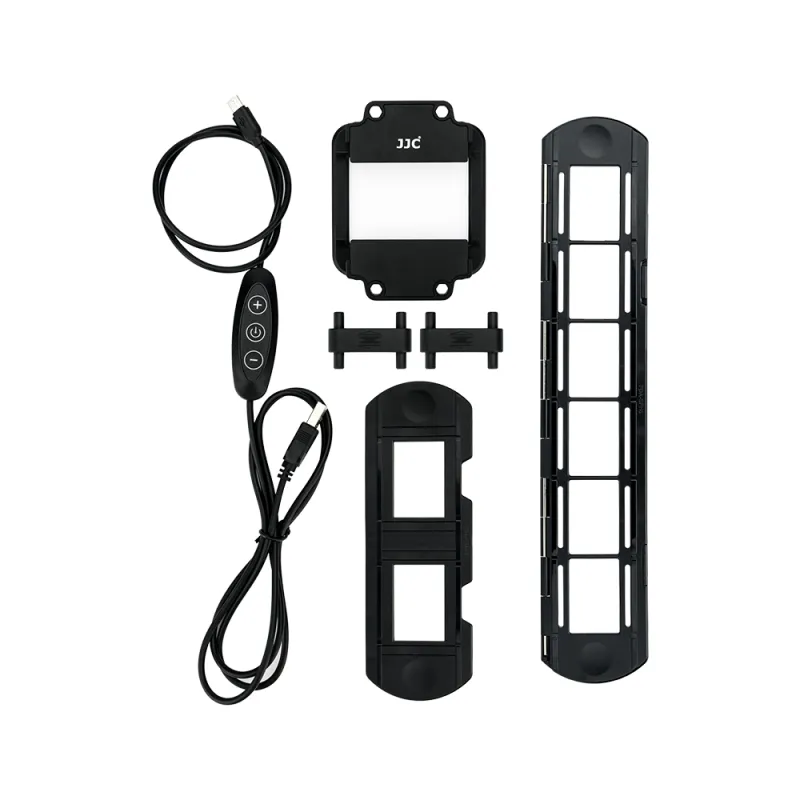 The JJC FDA-LED1 LED Light Set which is specially designed for negative copying and converts film to digital files. The set is compatible with micro lenses and can be used to photograph 35mm film.