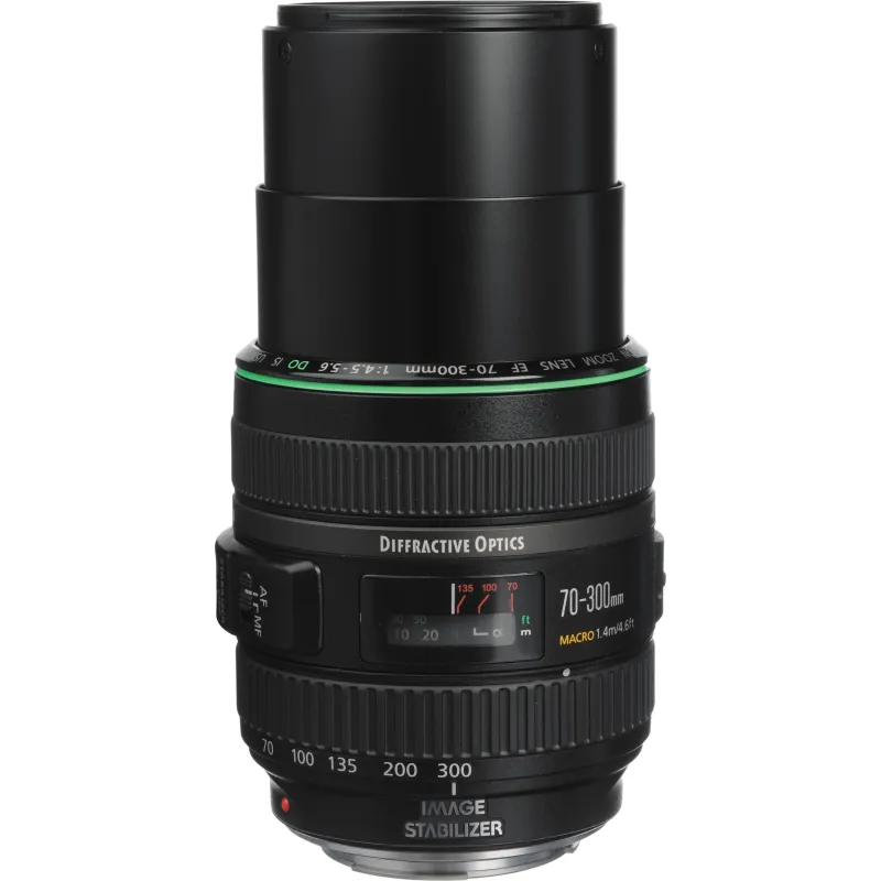 A superior performance, ultra-compact telephoto zoom lens with Canons Image Stabilization. These Diffractive Optics elements are combined to reduce size and boost image quality. AF is super-fast and silent with a ring-type USM, and it focuses down to 4.6 feet without rotating the front element. A new zoom lock button keeps the lens safe and secure when not in use or used at the wide angle.