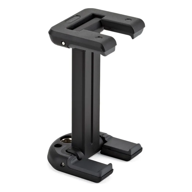 Connect a smartphone to any tripod, monopod or selfie stick via a standard ¼”-20 tripod attachment.