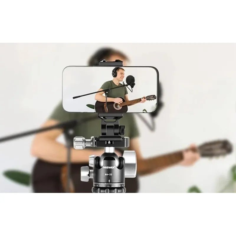The Neewer SP-02 is a solid solution for filmmakers who record with a smartphone. The clamp with a spring-loaded mechanism and locking mechanism holds the phone stably. The accessory supports devices from 66 to 96 mm wide, and rubber pads protect the edges from scratches. This allows you to record, stream, or photograph without stress.