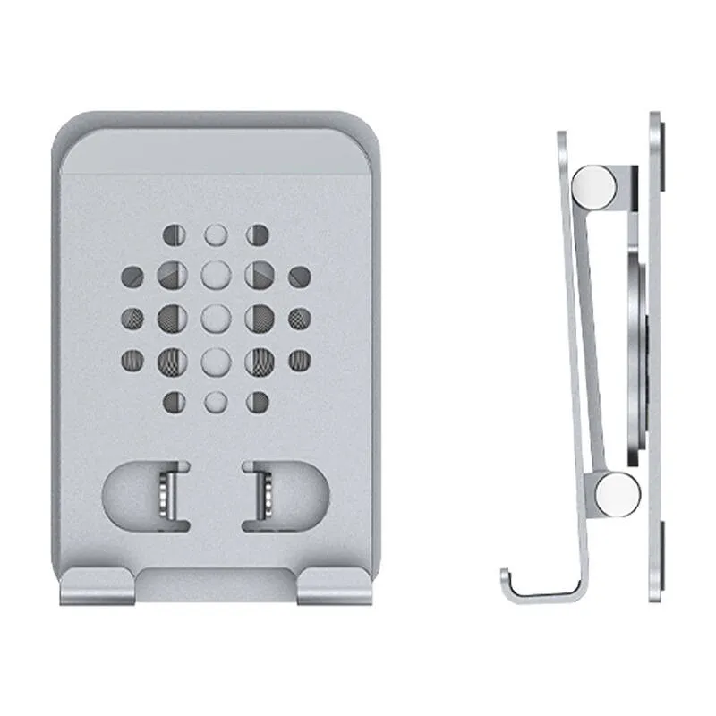 The Vention holder is a sturdy and stylish solution for anyone looking for a functional phone or tablet stand for their desk. Made of durable aluminum alloy, it provides unparalleled comfort and stability. With an adjustable tilt angle and 360-degree rotation, it allows you to position your device perfectly whether youre working, watching videos, or video conferencing. The compact design with vents allows for efficient heat dissipation, which is especially important during prolonged use of mobile devices.