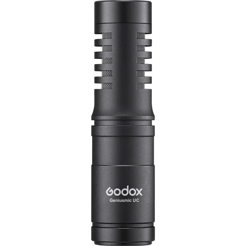 Godox Compact Directional Microphone with Type-C Connector For vloggers, livestreamers, videographers, and mobile journalists who need a space-saving microphone that provides higher-quality sound capture than their mobile device's built-in mic, the Godox Geniusmic UC offers an ultracompact and affordable solution. This miniature condenser mic connects directly to the USB Type-C port on your smartphone or tablet, no external cabling or mount required. It also features its own headphone output on the rear of the mic body, so you can conveniently monitor your input signal or playback through earbuds or studio headphones.