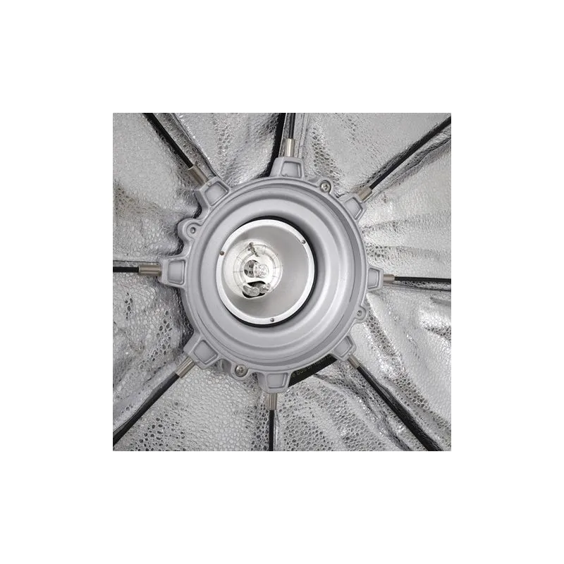 The Linkstar OSB-120LSR Octabox has a diameter of 120 cm and can be mounted on your studio flash unit with the included speed ring. The studio flash head sits deep in the octabox, which ensures minimal loss of light and provides an even spread of soft lighting.