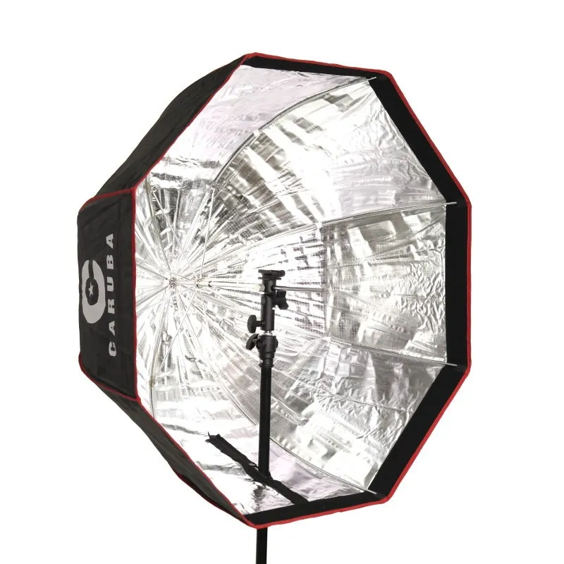 With this Caruba Orb Speedlite Kit 80cm you create beaufitul round highlights in the eyes of models with your reportage flash. This octagonal softbox doesn't need an adapter ring to mount your reporters in the orb. The orb opens like an umbrella and you place your flash unit on the standard accessory shoe of the Caruba Swivel. This makes the kit suitable for use with almost any kind of reportage flash. This kit consists of the Orb, Caruba FU-SOB Flash Umbrella Holder and Caruba LS-8 light stand.