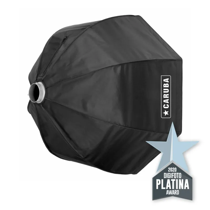 The Caruba Quick Assembly Matte Silver Octabox 95cm is an octagonal softbox designed for use with mono lights and flash heads with the popular Bowens S-mount. This type of softbox is mainly used for portrait and fashion photography. Thanks to the umbrella mechanism, the octabox is quick to setup and store. This version of the octabox comes with a 40 degree grid and a handy storage bag.