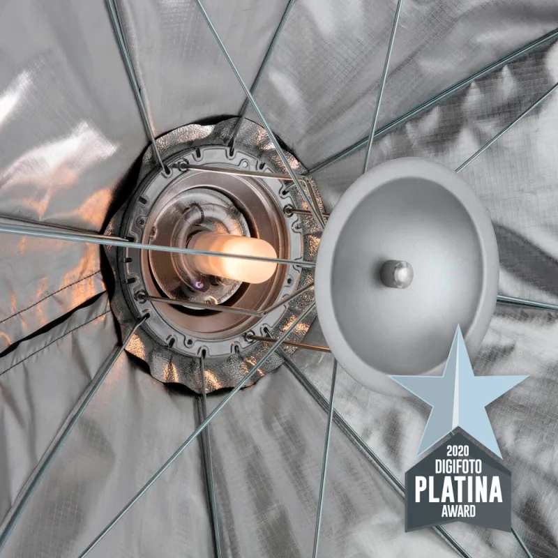 The octabox has a robust design and is equipped with an integrated aluminium Bowens speedring. Special support rods attached to the umbrella mechanism keep the octabox tight.