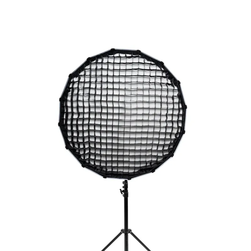 This Light Dome SE from Aputure is a 16-sided modifier with a 35.5" diameter. It has a soft wraparound quality that is a hallmark of this shape, especially when used close to the subject. It also has a few surprises that offer you several contrast options. The 1.5 and 2.5-stop front diffusion fabrics offer ways to manipulate the light. Additionally, a removable 1.5-stop internal baffle softens the initial point source of light and allows it to fill the entire softbox more evenly. The 45 fabric grid provides directional control to enable selective lighting. The Light Dome SE has a Bowens-type speed ring compatible with lights such as the Amaran 100d, 100x, 200d, 200x, Aputure LS 600d Pro, 300d II, 300x, and the 120d II, as well as many other lights that use this popular mount.