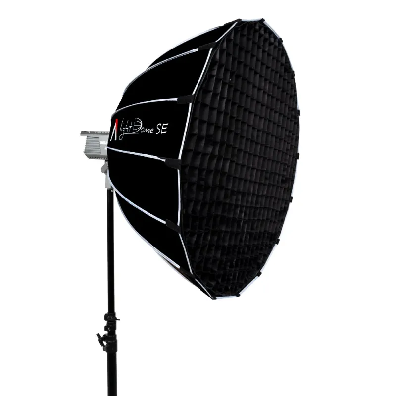 The Light Dome SE is a versatile lighting modifier that is great for filmmakers, online video makers, and photographers. It will allow you to beautifully light interviews and create unique portraits. Combine the softbox with a flash equipped with a Bowens mount (such as the Aputure Light Storm series or Amaran 100 and 200 COB) to transform a single source of hard light into perfect soft light.