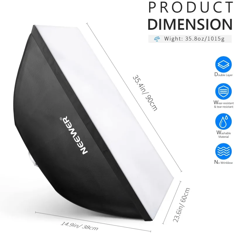 NEEWER(TM) Softbox is designed to diffuse a strobe flash, giving you better even lighting. It comes with a silver reflective interior and a flush front face. It's necessary in any professional portrait studio.
