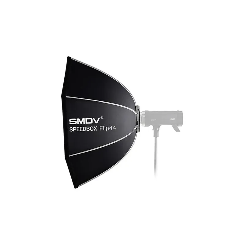 The SMDV Speedbox Flip-44 is a very quick to set-up, octagonal softbox. The Flip-44 has a diameter of 110 centimeters and features a practical folding system. This gives you the opportunity to unfold and fold it in no time. It comes in a handy carrying bag.