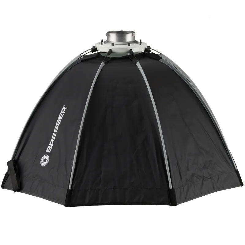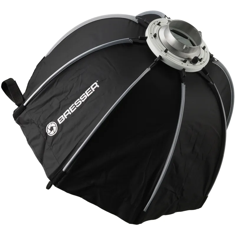 The BRESSER Super Quick softboxes are ideal for photographers who need a space-saving solution for their studio or a quick, uncomplicated and transportable model for frequent on-location shooting. They are available in a range of different sizes and come with connections for different studio flash models .