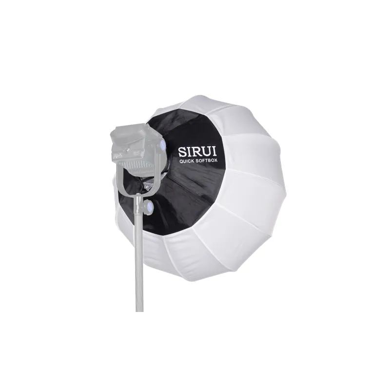 This RGQ65 softbox from Sirui helps you diffuse light. Just the way you want it. You fold it in and out easily, thanks to the special metal construction. Once unfolded, the RGQ65 softbox keeps its shape very well. And when folded, the softbox is compact to take with you. You can do that in the supplied bag. Nicely organized, together with all supplied accessories. The Bowens connection is suitable for many light sources. For example from Sirui, StudioKing and Linkstar.