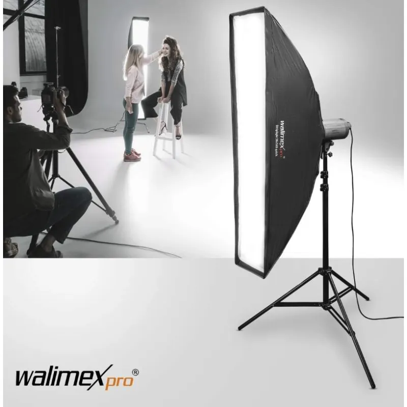 The Striplight Softbox from the Walimex pro Studio Line is a professional light shaper that allows a model to be effectively separated from the background. Product photographers use this softbox when a long, narrow reflection with soft edges is desired. This light shaper is also a great help when shooting in tight spaces. This striplight softbox is also specifically aimed at on-location photography and is particularly compact, light and easy to use. High-quality materials and allow for quick assembly without the hassle of fiddling with the tension rods.