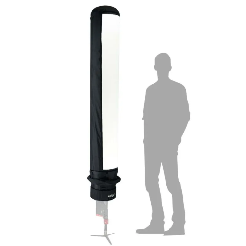 The Airtube 360 L is a tubular softbox for LED headlights and 1x1 panel lights.* Apart from the two end faces, the entire cylinder is made of translucent fabric. The beam angle is therefore 360°. It is mounted using a Fresnel adapter. Just like that The other models from Caligri can be filled with air in just a few seconds. This way you can transform your headlight into a huge light column. If necessary, you can reduce the light beam to 180°.