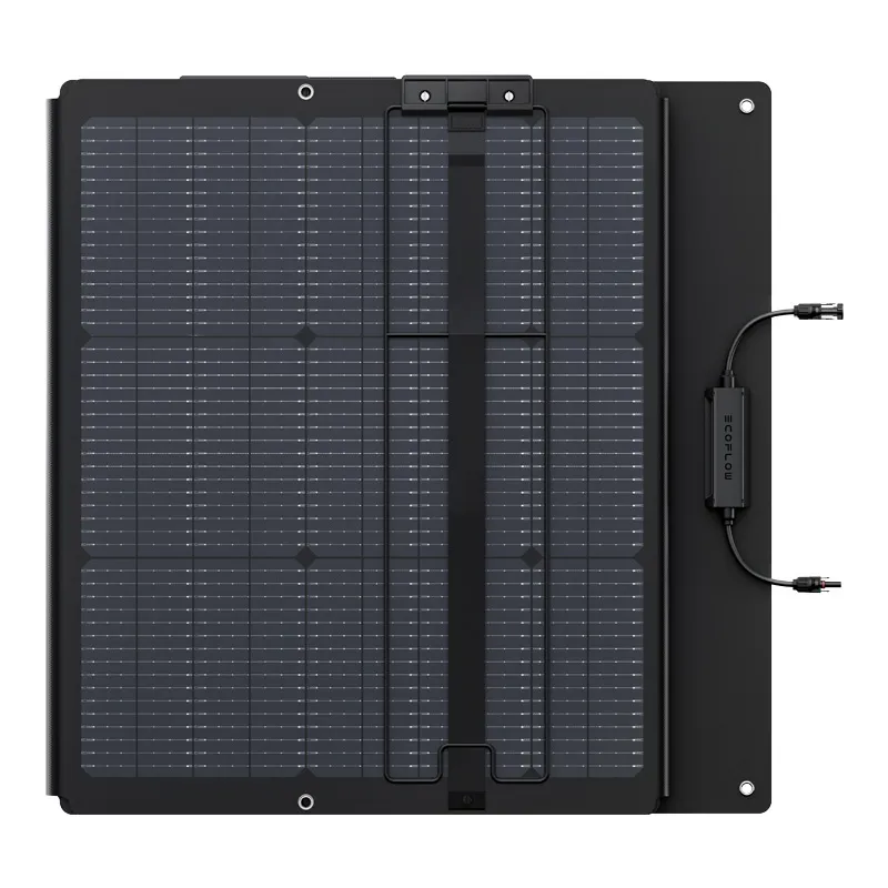 Thanks to its clever design, the panel folds up easily and doesn't take up much space - it will fit in a locker, camper, or trunk. It only takes a few seconds to unfold it and start charging. The built-in universal solar connector allows it to work not only with EcoFlow stations but also with most models on the market.