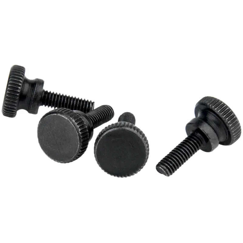 Knurled head type screws, ideal for VESA mount monitors, feature a pattern of ridges that allow for easy gripping and tightening by hand. The specifications are as follows: