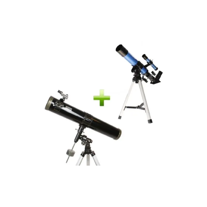 ;The telescope uses mirrors and is therefore also called a Newton or reflector telescope. With a mirror with a diameter of 40mm, the telescope is capable of finding planets and stars that are (relatively) close to us. To view the celestial bodies, the telescope is a searcher that allows the viewable object to be detected first to view the telescope.