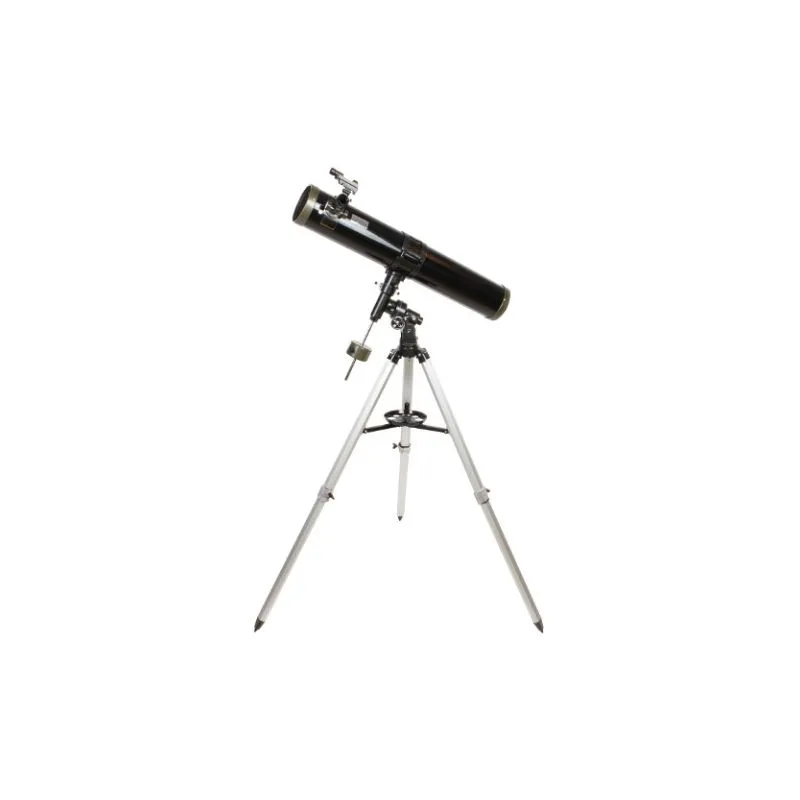 ;The Byomic G-Reflector telescope 114/900 is the perfect combination of a Newtonian-mirror with compact dimensions. The mor experienced astronomer will know lightfall is an important factor in astronomy. The mirror with a diameter of 114 mm receives a significant amount of light which is reflected. In this way you will see objects that are situated far away in our Solar system. The 114 mm opening and relatively long focal length of 900 mm give this OTA (Optical Tube Assembly) a focal ratio of F/7,9. That makes this an allround telescope suitable for low power wide field observing and deep space photography but also for lunar, planetary and binary star observing and high power photography. It is very easy to follow objects in the nightsky because of the paralactic mounting. You will also receive a tripod with equatioral mount (EQ-SKY) which gives it a solid base and very good tracking options.