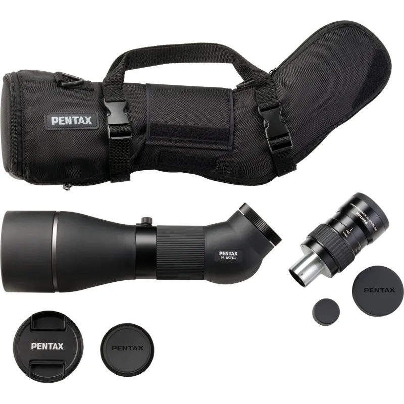 Pentax Spottingscope PF-85EDA KIT + SMC Pentax tālummaiņas okulārs 8-24 mm ietver okulāru, kas nodrošina palielinājuma koeficientu no 20x līdz 60x, kas atbilst redzes laukam no 33 m līdz 17 m 1000 m attālumā.
