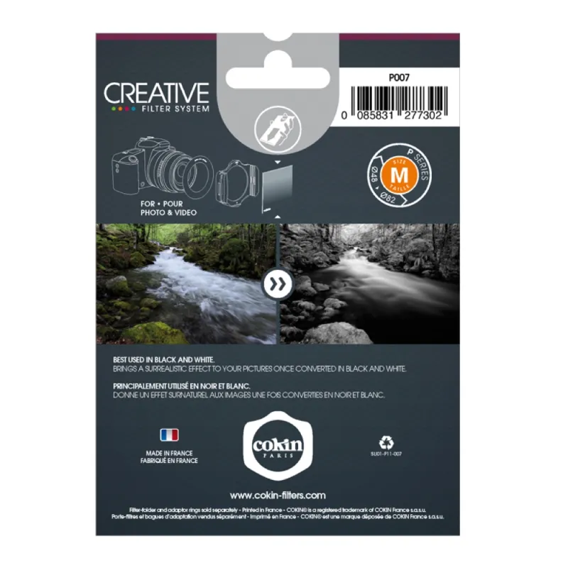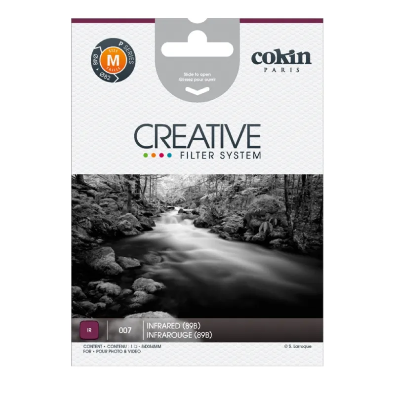 The Cokin Filter P007 Infrared 720 (89B) is especially suited for black and white infrared film. This filter blocks the visible spectrum and lets only infrared light through. It is a lightweight filter with optimal optical performance.