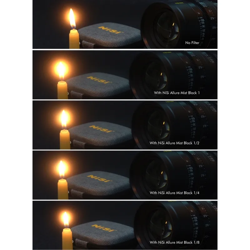 The NiSi Allure Mist Black Filters are available in 4 different strengths: 1, 1/2, 1/4, and 1/8