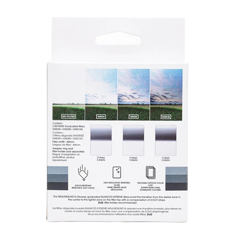This Cokin Nuances Extreme Reverse Kit P series contains three high quality Cokin full ND grey filters for the Cokin P system. A grey filter is very popular among landscape and architectural photographers. With these filters you use slow shutter speeds to make a cloudy sky or water surface smooth and soft, or to make people walking by "disappear" from the picture. You influence the shutter speed in an innovative and creative way. You also capture portraits in bright surroundings without having to turn up the ISO of your camera.