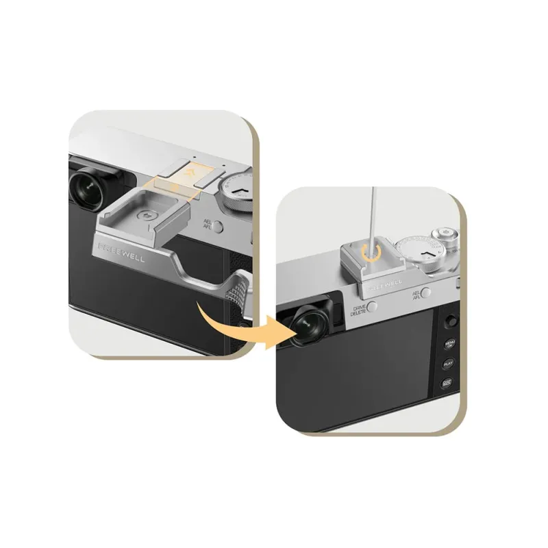 The Freewell grip is an ergonomic extension for the Fujifilm X100VI, designed for greater comfort and stability when shooting. The mount does not obscure any buttons or dials, allowing you to maintain full control of your camera even during long sessions.