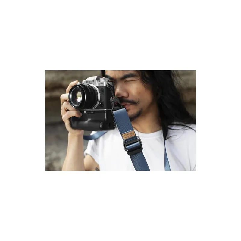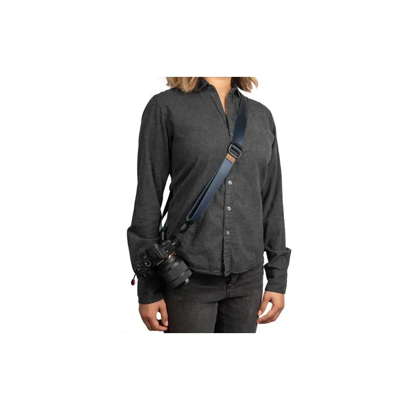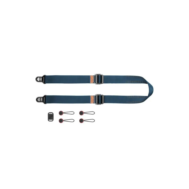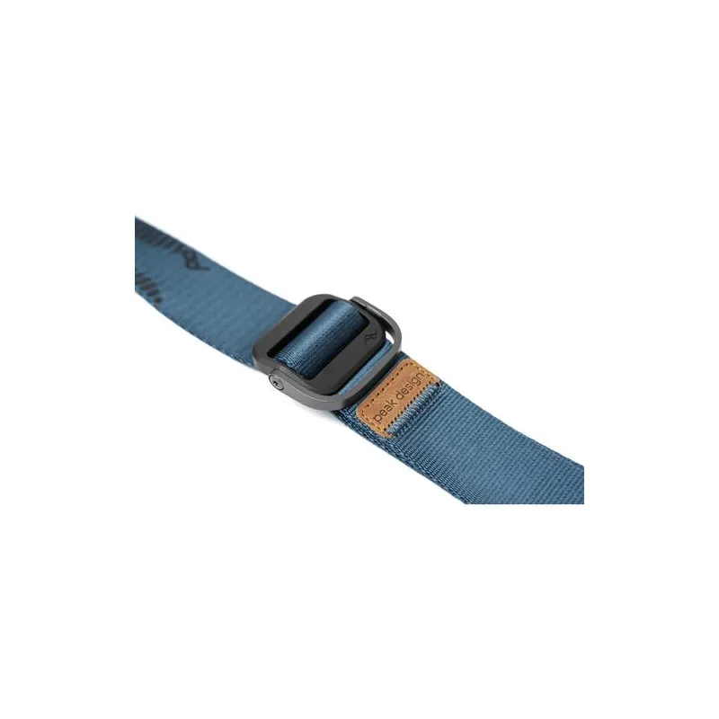 Carry your equipment in comfort and style with this blue Slide Lite Camera Strap from Peak Design. This strap uses strong, removable anchor connectors that attach to the eyelets of your camera or the included mounting plate, holding up to 200 pounds of gear and easily supporting most DSLR and mirrorless systems. By pairing this versatile connection with its 39 to 57" adjustable length, the Slide Lite can be configured to work as a sling, shoulder, or neck strap.