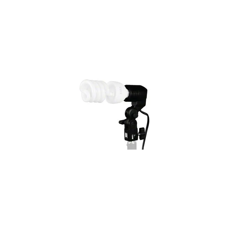The umbrella holder for a sync flash is ideal for all sync flash lamps and spiral lamps with E27 socket up to max. 250W. It can be rotated by 360° and tilted by 180°, and is therefore extremely flexible. The on and off switch is located directly on the body. When you are working with a compact flash, the lamp holder is ideal for mounting a spiral lamp as a modeling lamp.