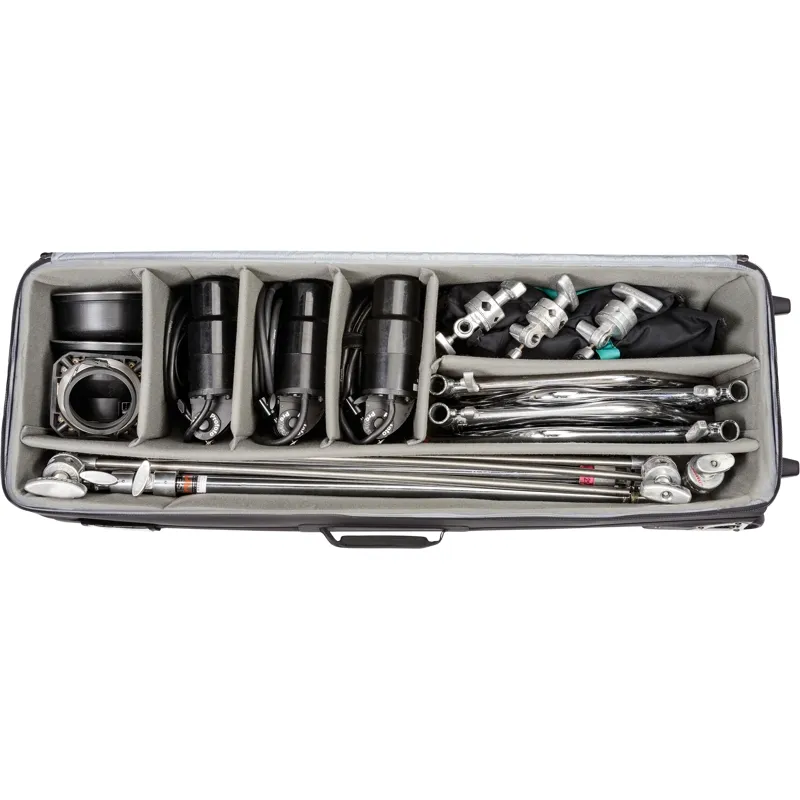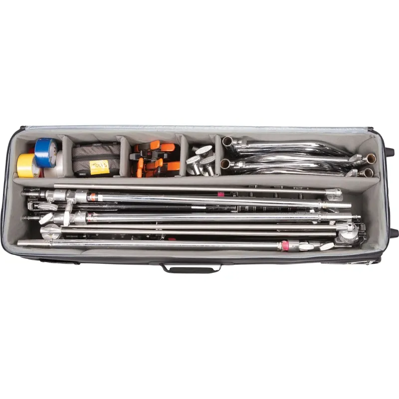 As our largest case to date, this professional strength, high-capacity rolling case is designed for lighting gear.The Production Manager 50 is the most efficient way to safely transport a large amount of equipment. Professionals will appreciate the robust design of this large roller with room for C-stands, multiple flash heads, power packs, monoblocks, softboxes, and light stands.