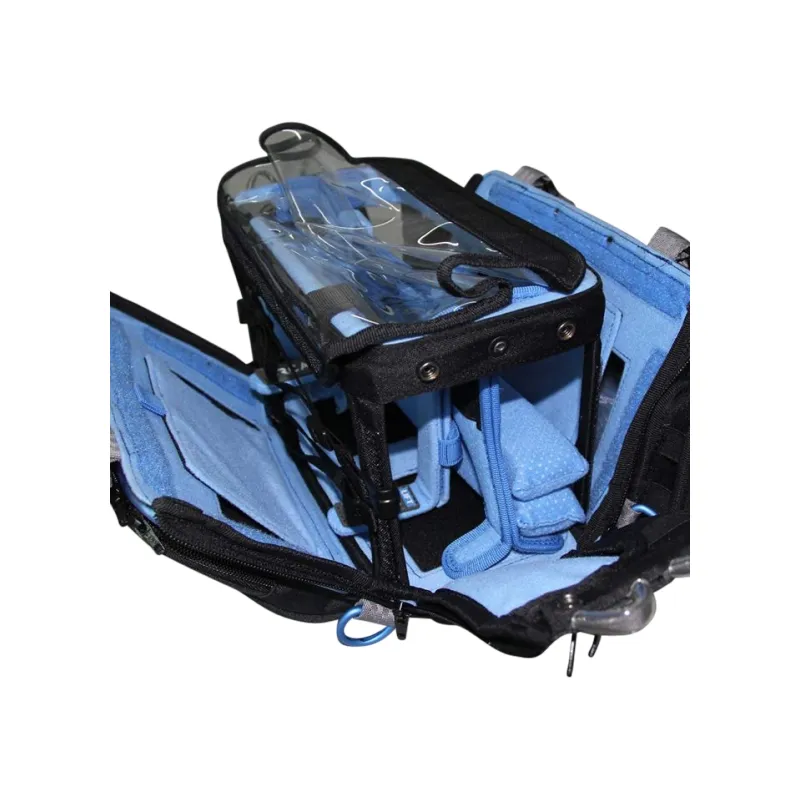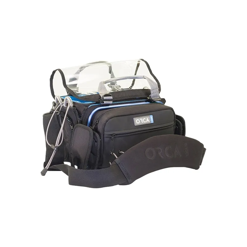 The Orca OR-30 Audio Mixer Bag has an easily detachable front panel, which can be used as a stand-alone pouch for accessory storage. The OR-30 offers optional covers in three different colors: black, blue, and gray.* The OR-30 is recommended for the Zaxcom Max; Sound Devices 633, 833, and 888; and similarly sized mixers.